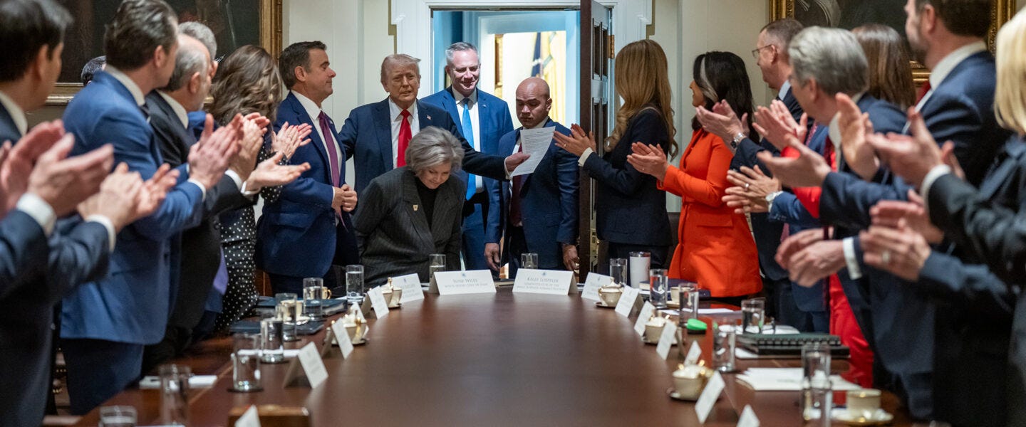 Around him: a cabinet assembled not for competence but for complete fealty. Not for judgment but for silence. Not for the capacity to navigate a dangerous world but for the willingness to let one man navigate it alone, unchecked, unaccountable, and increasingly unhinged.