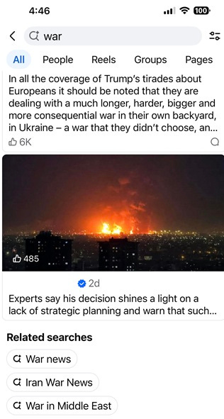 A strike on Tehran loads between a sponsored post and a friend’s vacation photos. It has a thumbnail. It has a view count. It has, depending on the platform, a reaction button. You can respond to an airstrike with a red heart or a crying face, and then the feed moves on.