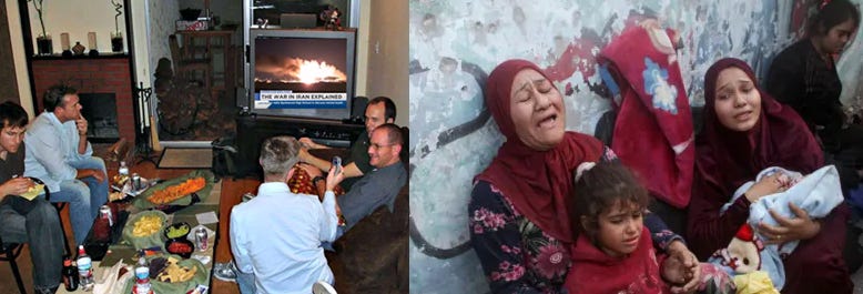 The distance between the American couch and the rubble of Gaza and Tehran was not created overnight. It was constructed over generations, deliberately, through the defunding of journalism, the rise of algorithmic media that buries what remains, the end of the military draft, the normalization of forever wars, and the abstraction of Americans from consequence. War is a video game and its victims are what Elon Musk describes as NPC’s: Non-player characters.